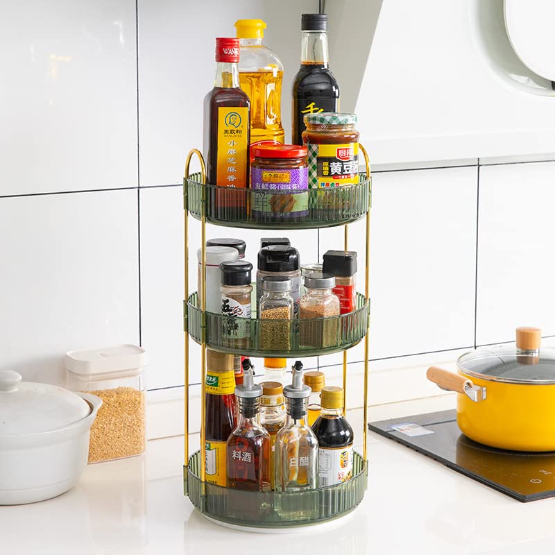 - 【Widely Used】: The turntable organizer can create extra storage space in kitchen counter, bathroom vanity counter, study table, dressing table, office table, cabinet and other places to be bathroom counter organizer, dresser organizer countertop, skin care organizer, kitchen spice racks. You can use the three trays separately or assemble them for use.
