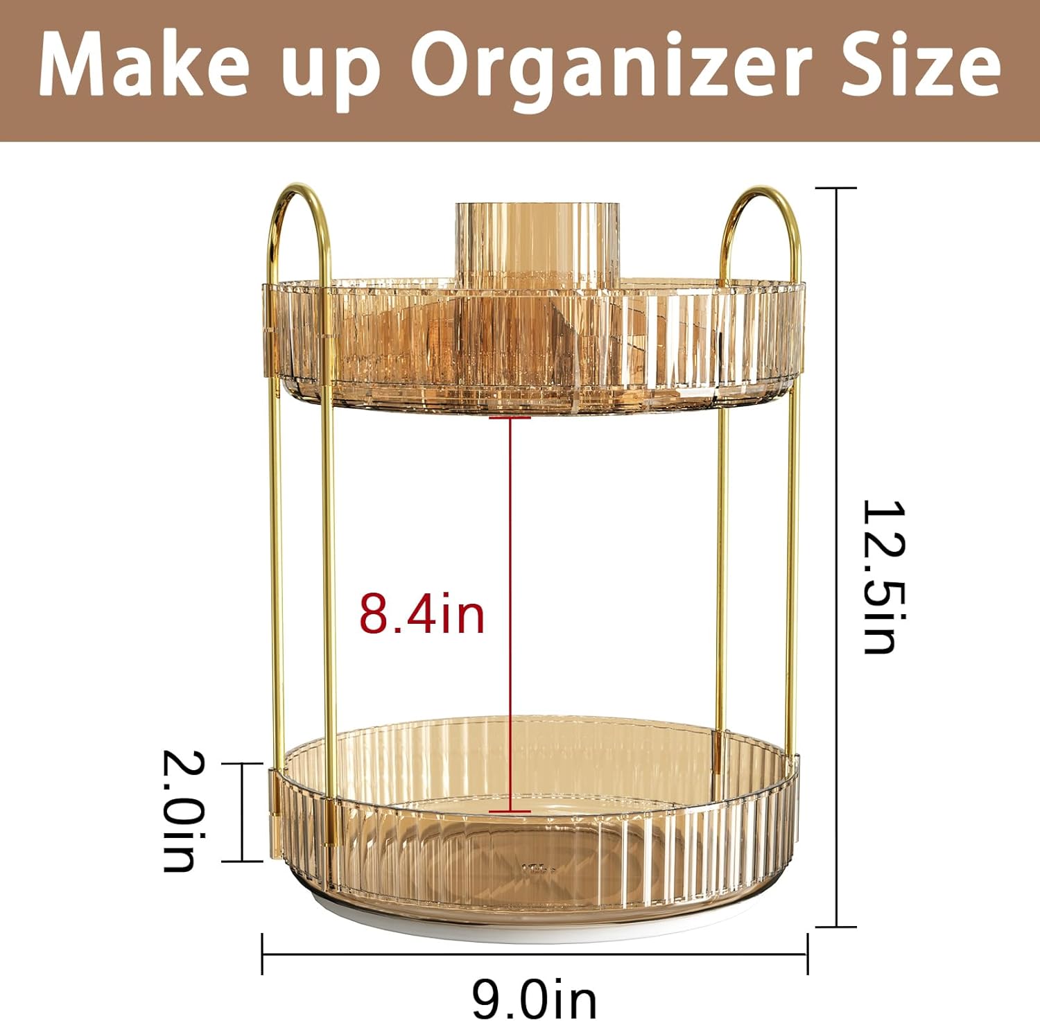 - mooth Rotation: 360 degree rotation makes it easier to find what you need and brings you a convenient using experience. Tray edges are 1.96'' high to ensure that cosmetics do not fall out when