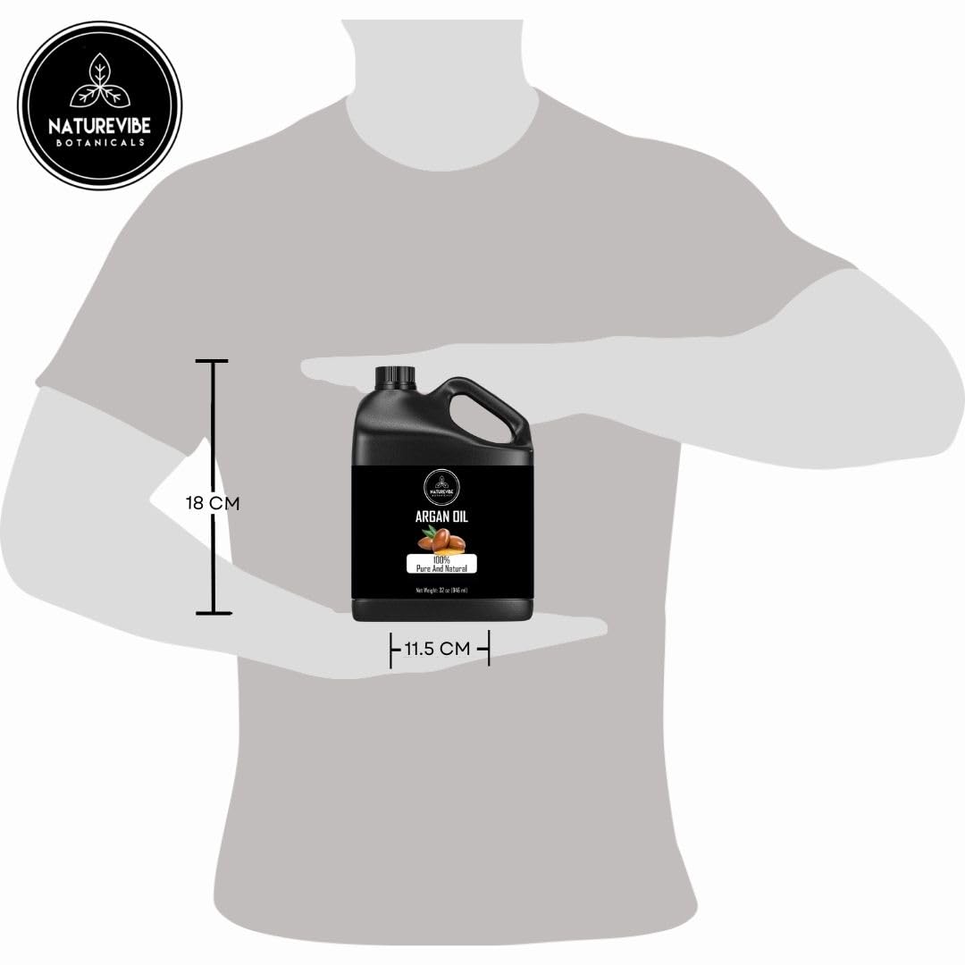 - β Naturevibe Botanicals Argan Oil 32 Ounces 100% Pure & Natural Morocco Oil | Cold Pressed | Great for Skin, Nails & Hair | Non-Greasy Body Oil | Face Moisturiser (946 ml)