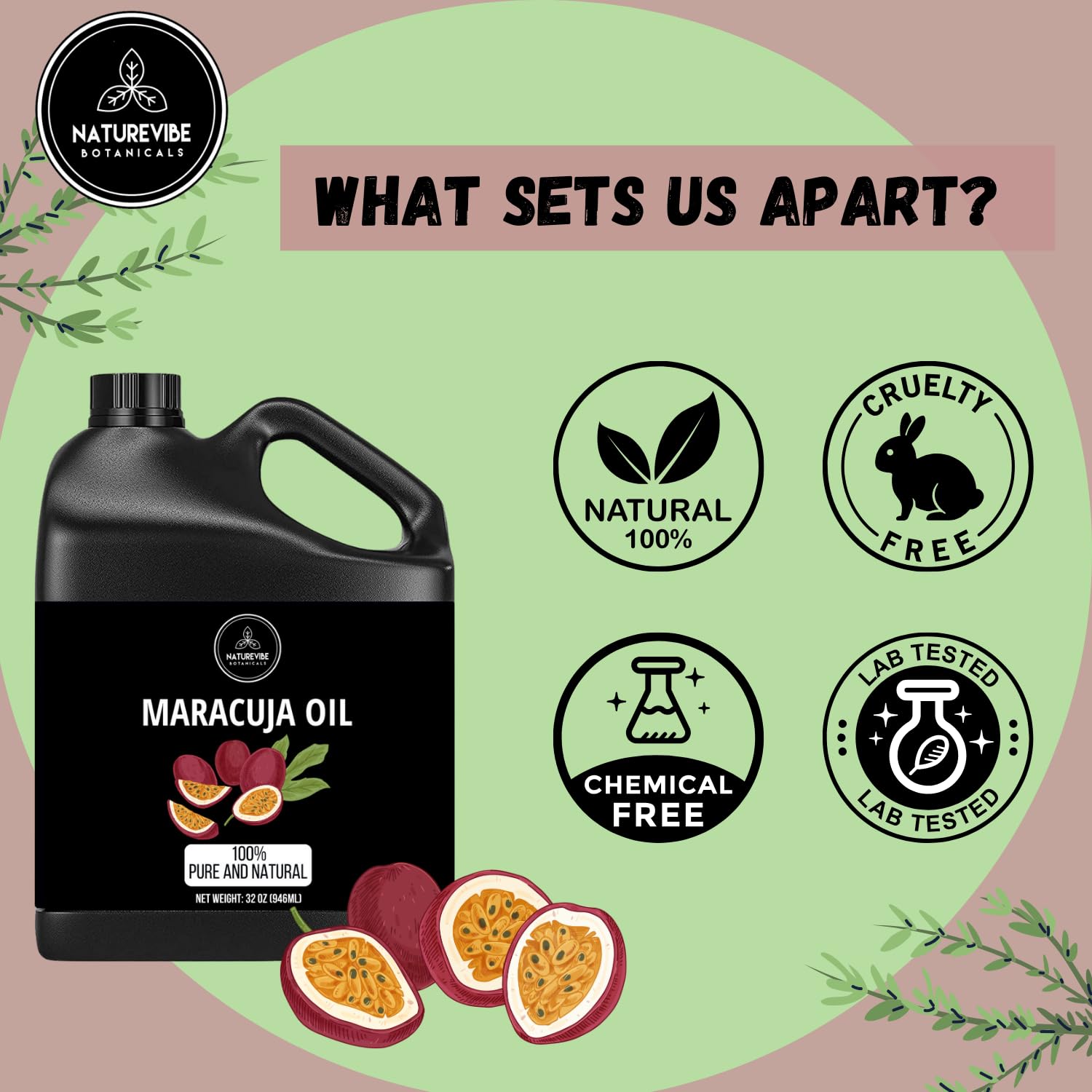 - ✅Naturevibe Botanicals Maracuja Oil 32 Ounces 100% Pure & Natural Cold Pressed Passion Fruit Seed Oil | Premium Grade Oil for Hydrating and Soothing | Body Oil Great for Hair, Skin & Nails (946 ml)
