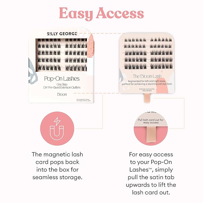 - NATURAL & EFFORTLESS POP-ON LASH CLUSTERS: Experience instant one step salon-quality lashes! Silly George Pop-On, pre-glued, handmade clusters deliver custom, weightless, and natural-looking lashes lasting 5-10 consecutive days!