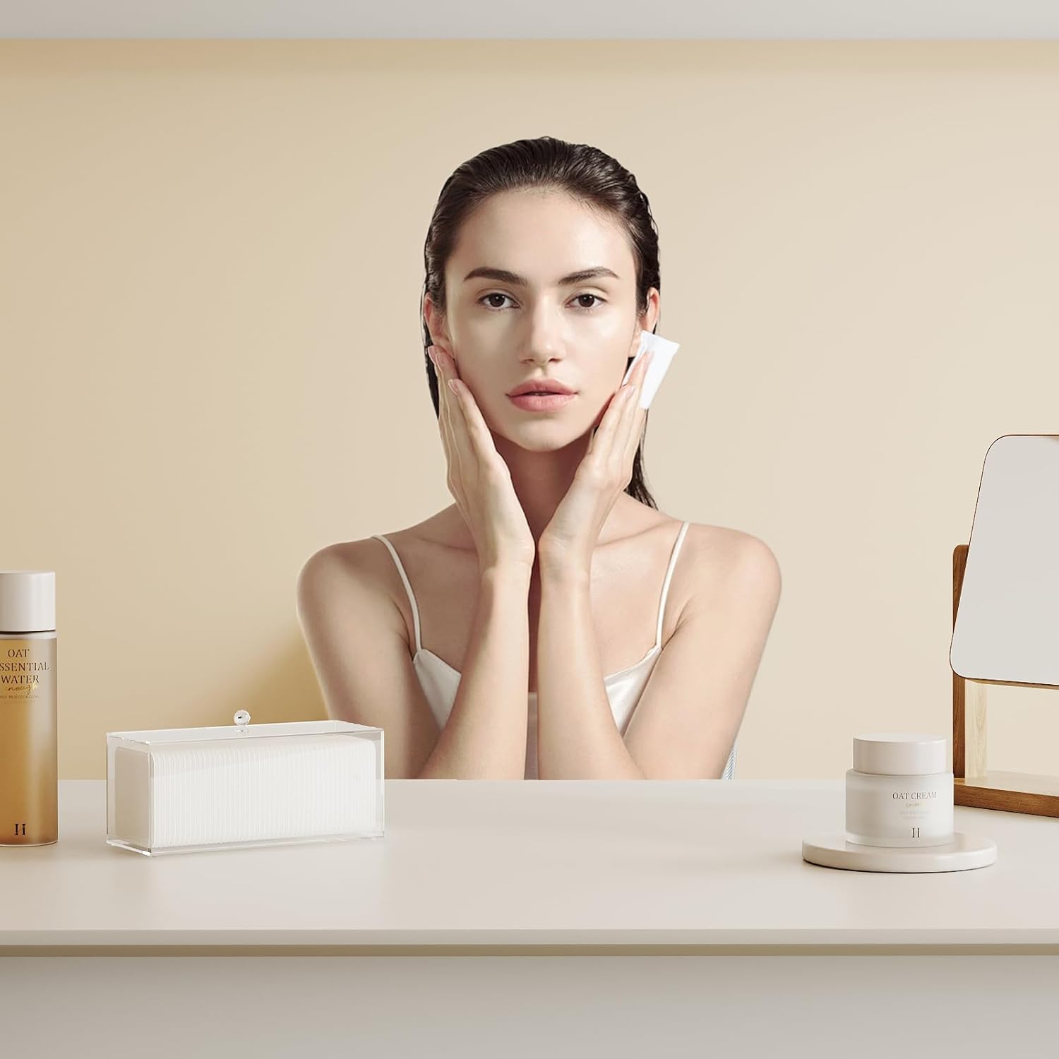 - 【Good Size Compatibility】:Use it as a clean pad holder on your vanity or as a square cotton pad holder in your bathroom. This bathroom counter organizer accommodates square cotton pads up to 2.95" x 3.11" in size. Compatible with various sizes of cotton pads.