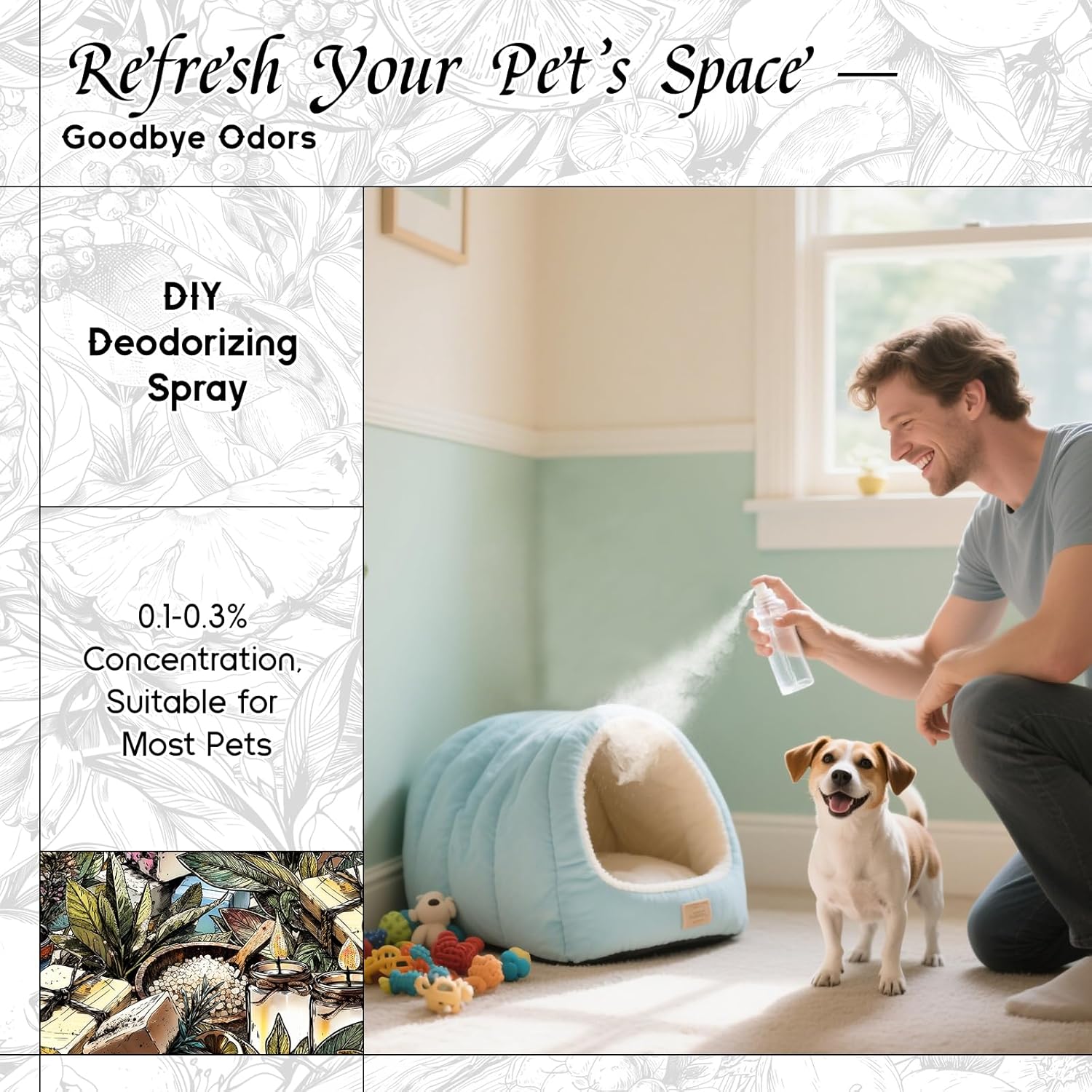 - Pet-Friendly Formula β Safely enjoy aromatherapy without harsh chemicals. Our oils for spary making and diffuser use are gentle around pets when used as directed