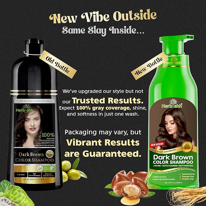 Hair Color Shampoo for Gray Hair, Dark Brown, 500ml with Color Stain Remover Wipes, Ammonia Free